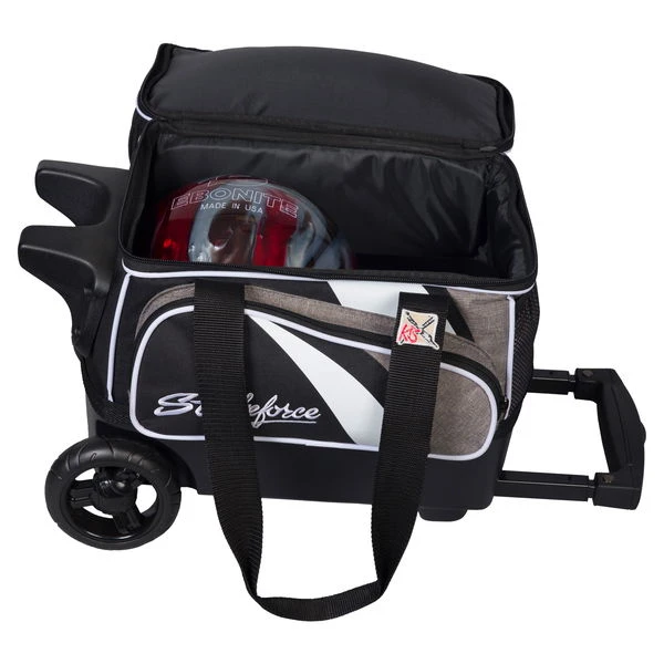 The KR Strikeforce Cruiser Single Roller has 4″ wheels and a retractable square locking handle that extends to 39″ for a quiet and easy ride through the bowling alley. This bag holds 1 bowling ball, accessories, and a pair of shoes.